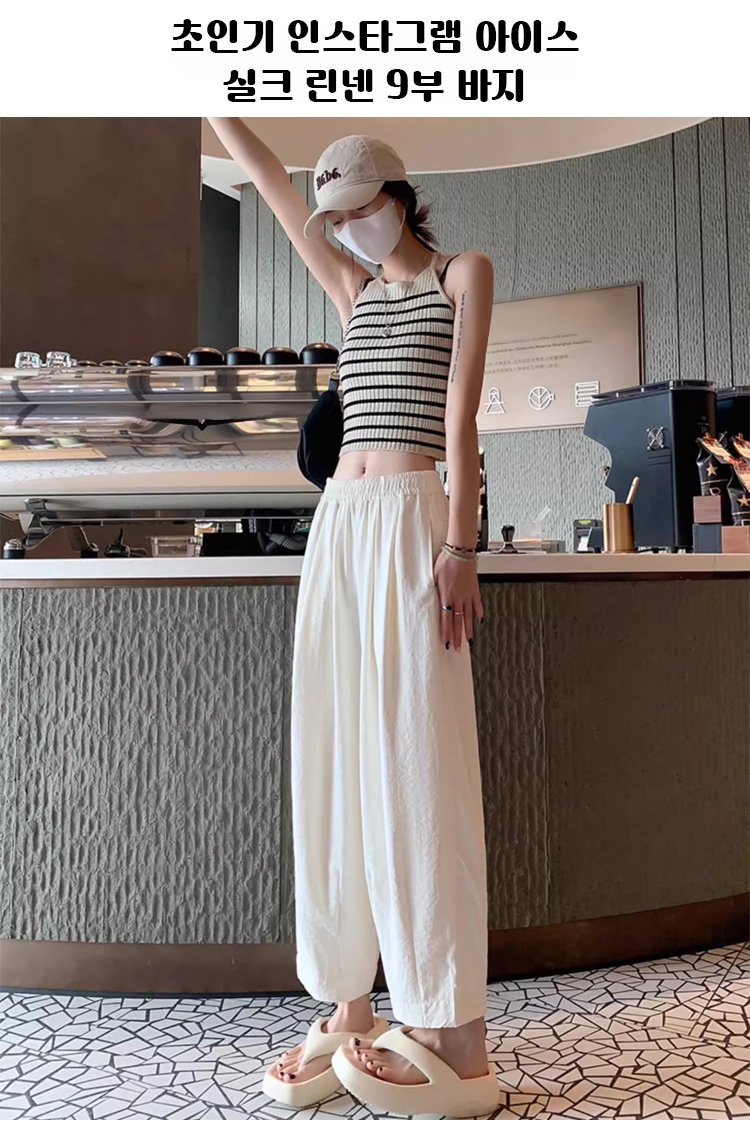 하이웨이스트 슬림핏 쿨 하렘 팬츠